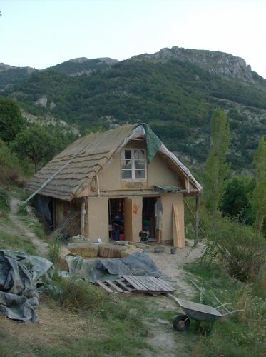 De plus, la majorité des matériaux étant naturels et locaux, ils n'ont pour ainsi dire rien coûté. Mis à part les fil de fer pour fixer le chaume du toit, les plaques de bois de l'étage et l'outillage, pour un total actuel de 500€, l'ensemble de la construction est issue de la récupération, et donc gratuite.