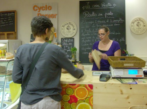 Le jour suivant, nous sommes tombés sur un petit magasin bio qui s'appelle le Cyclopanier. Chloé, étudiante en M2 de littérature allemande y travaille comme vendeuse et nous a raconté un peu le principe.